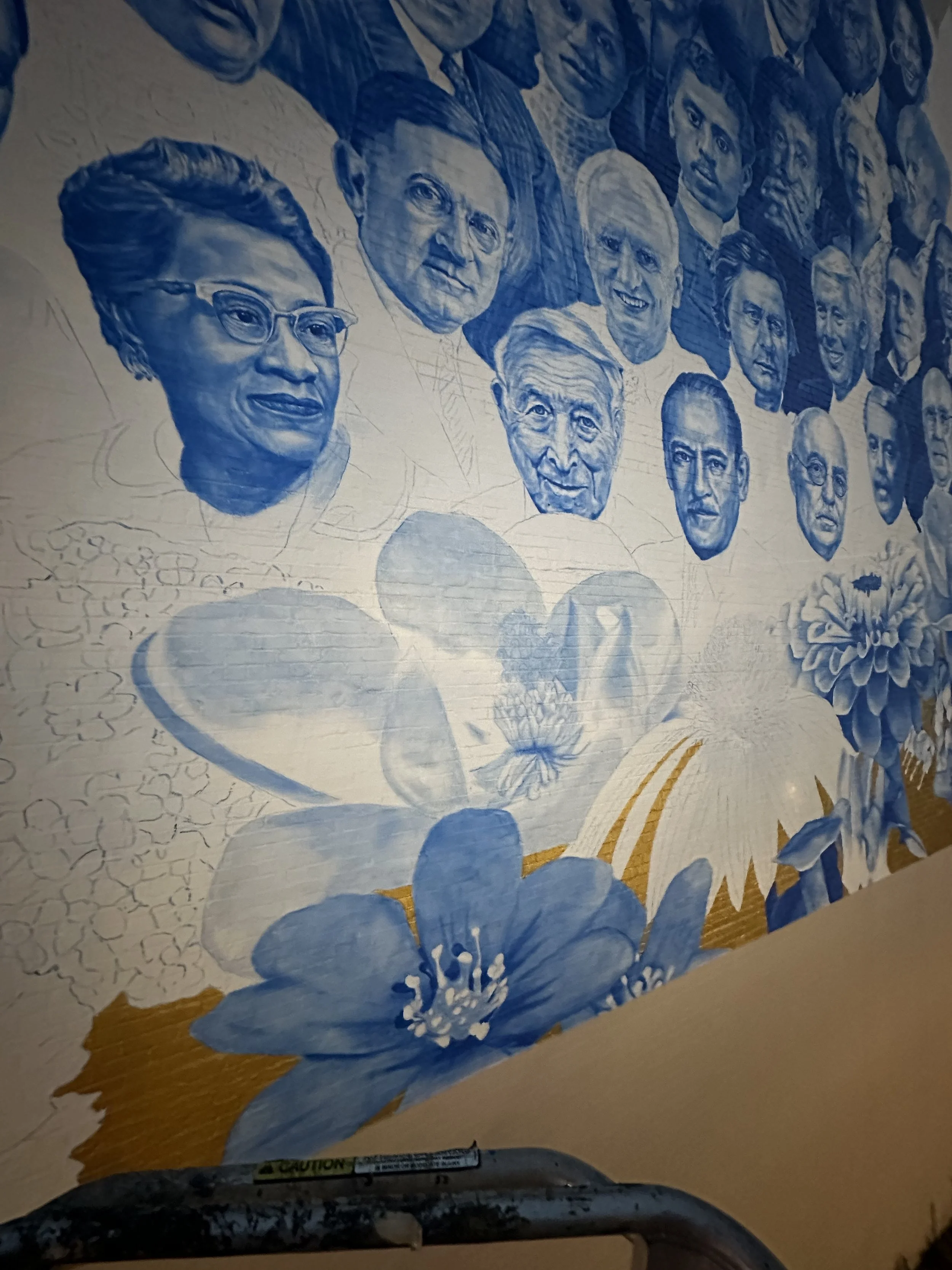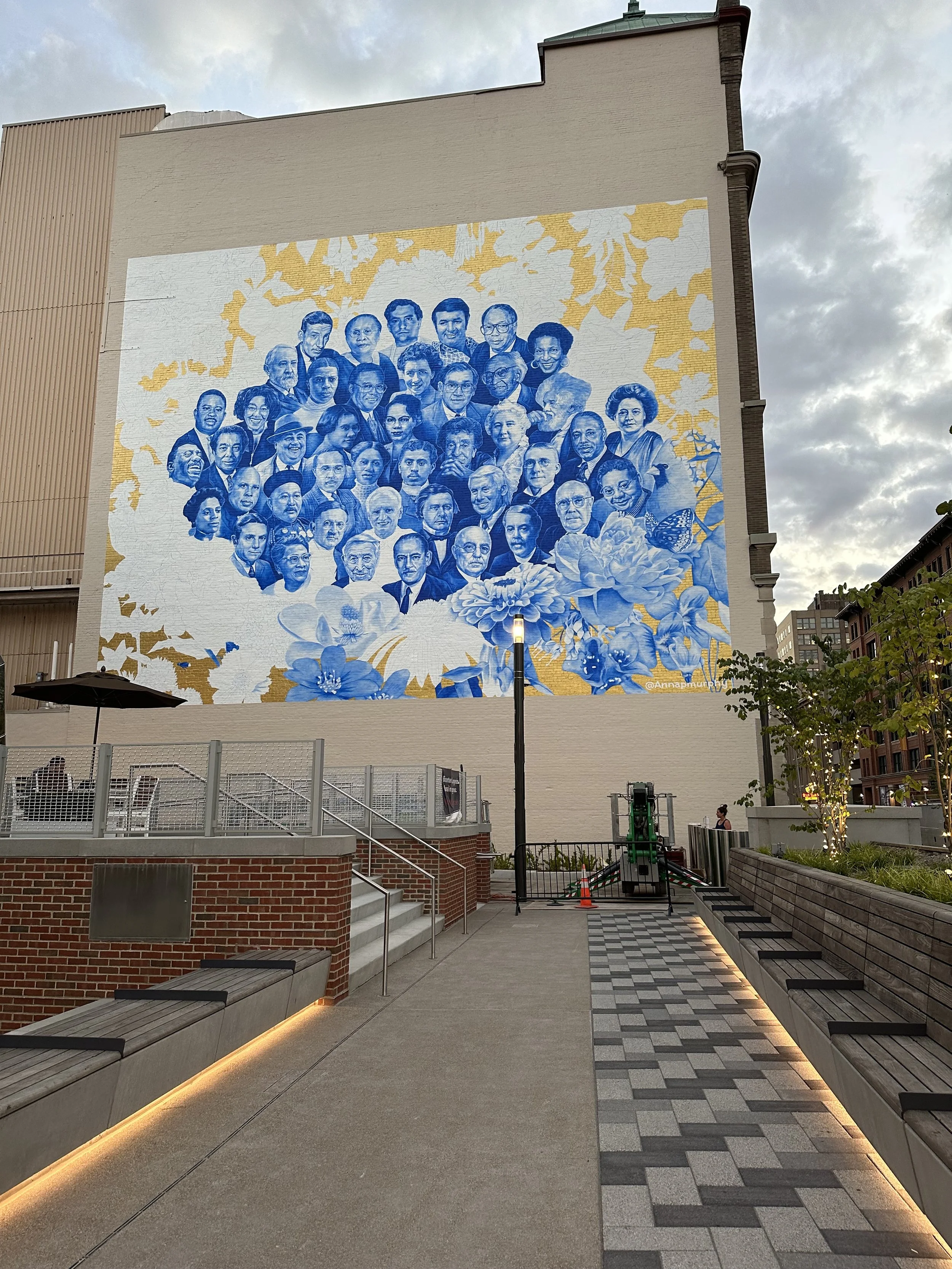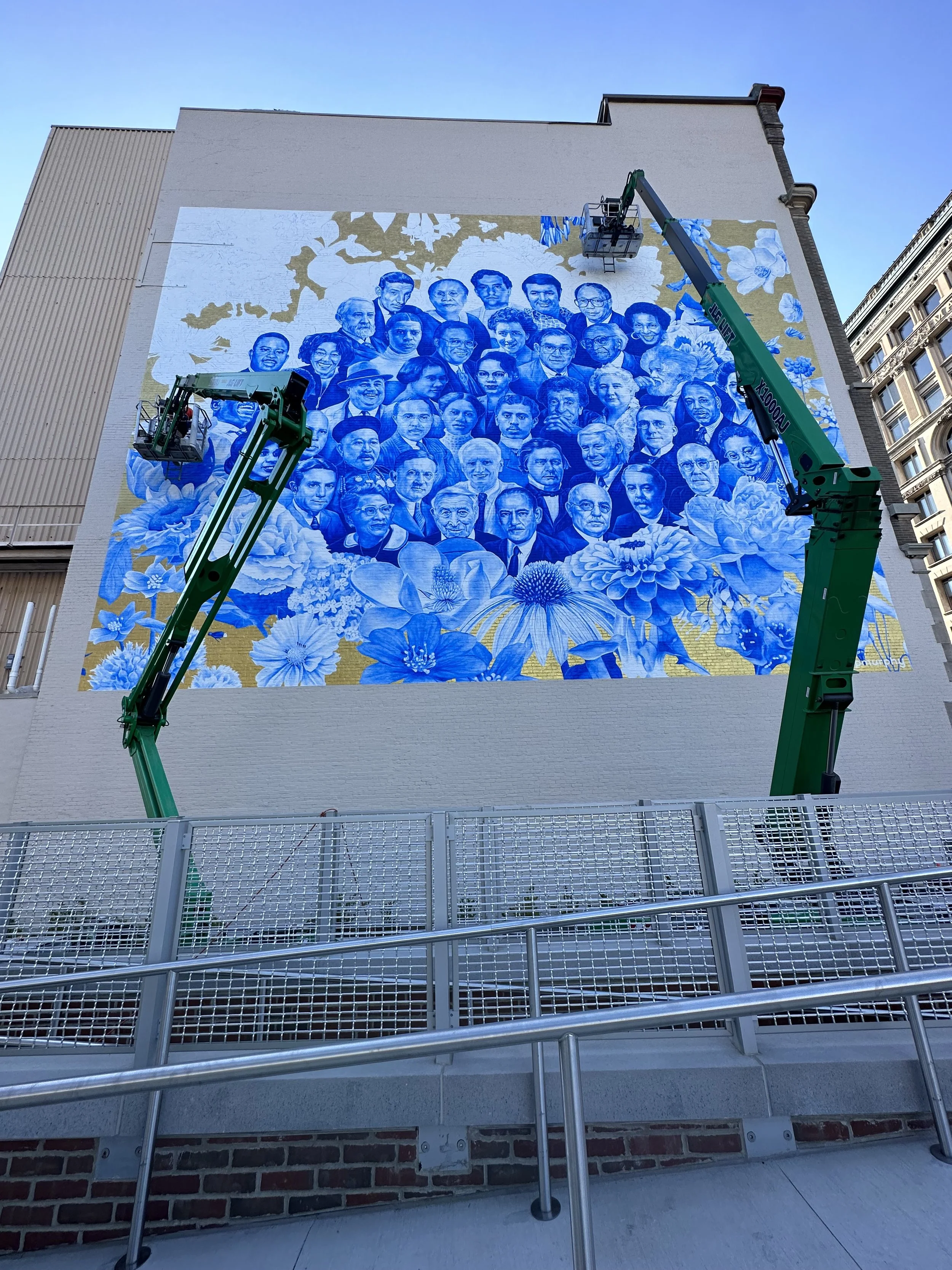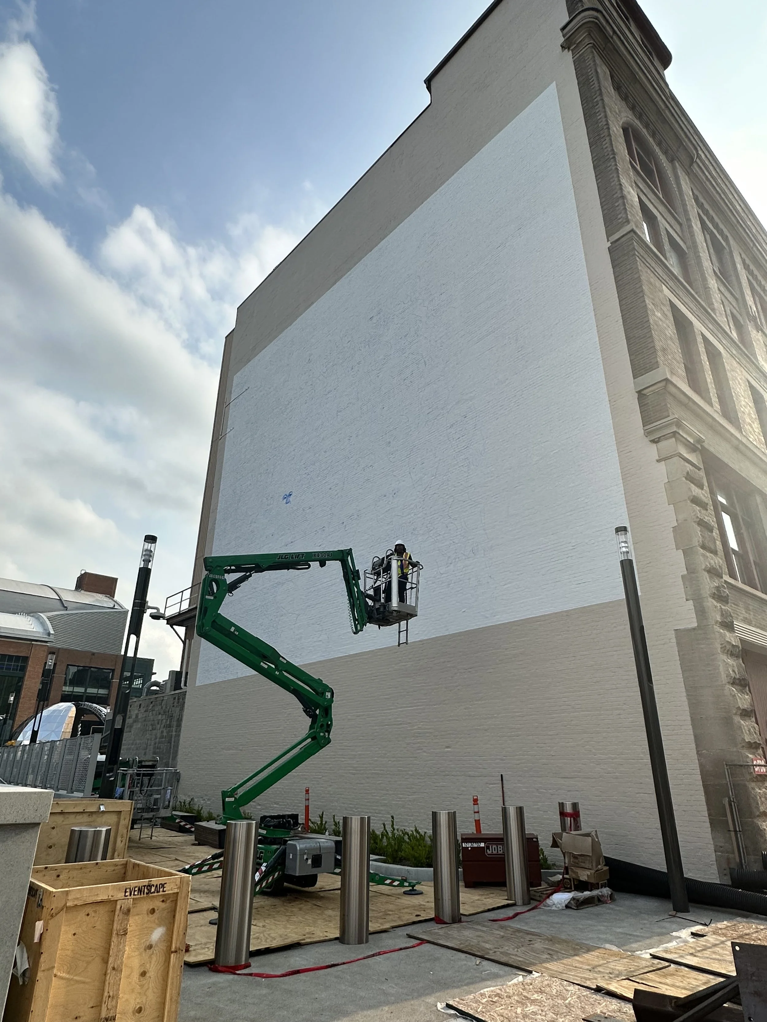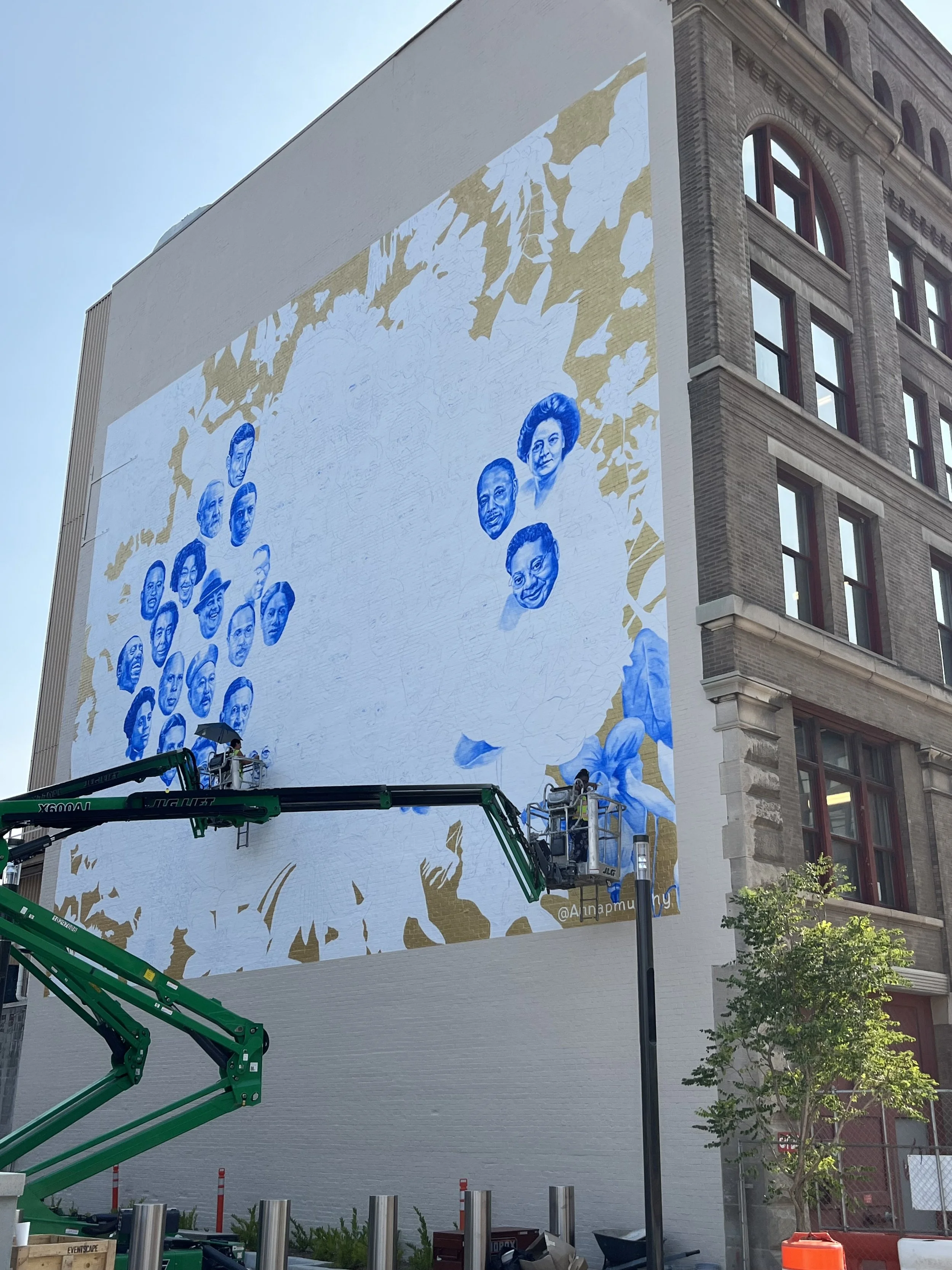 In 2023, I assisted Chicago based artist and muralist, Anna Murphy, on a large scale mural located downtown Indianapolis on the Steak N Shake Headquarters at Morris Bicentennial Plaza. The mural was the final installation for the Bicentennial Legends mural project. This particular mural features 44 Hoosiers who made a significant impact within the state of Indiana. The design included portraits as well as birds and flowers that paid homage to the roots of the legends’ hometown.
