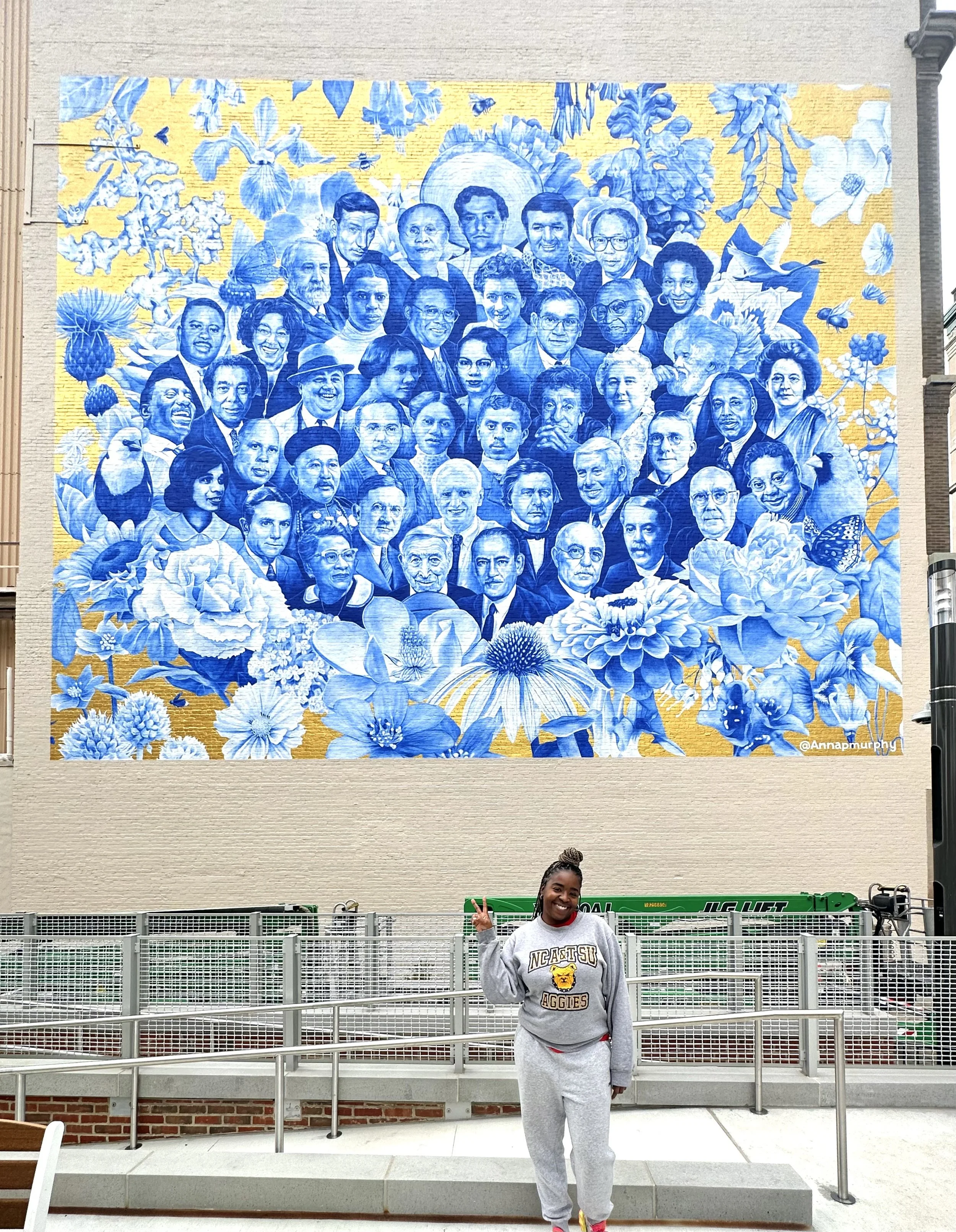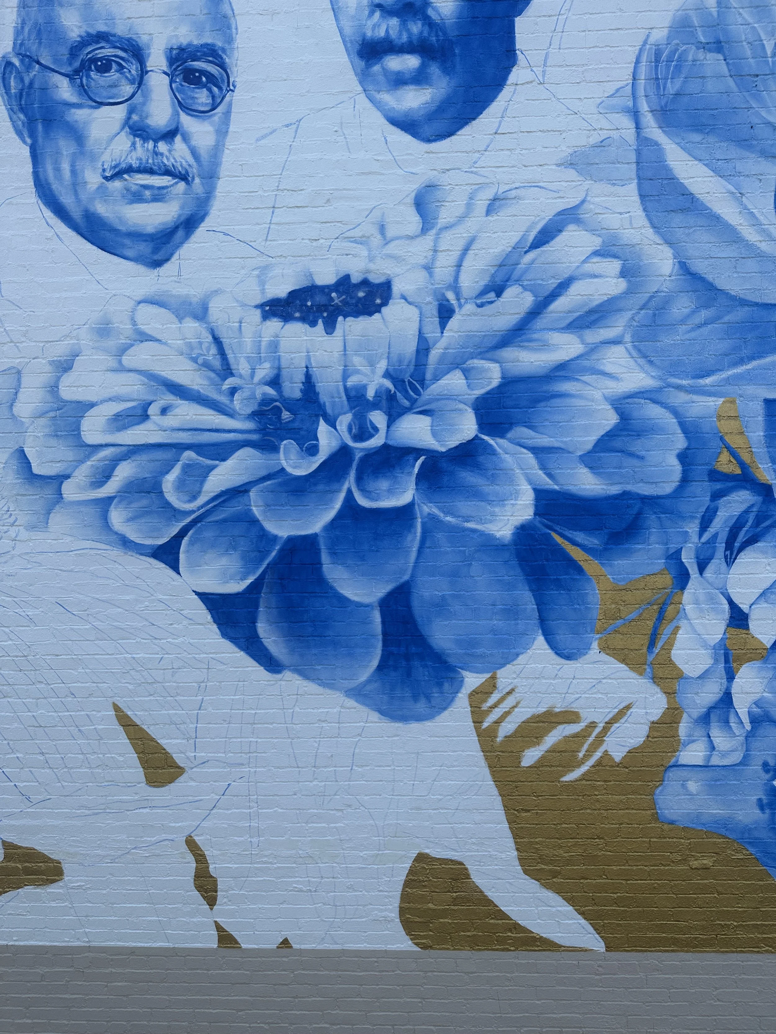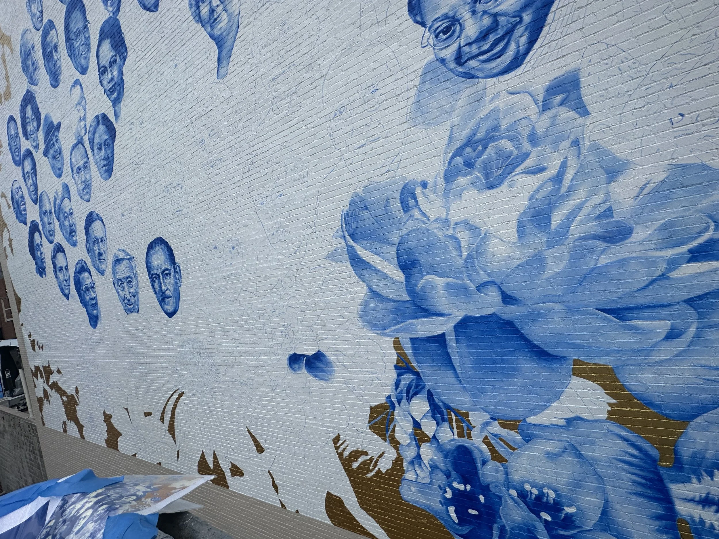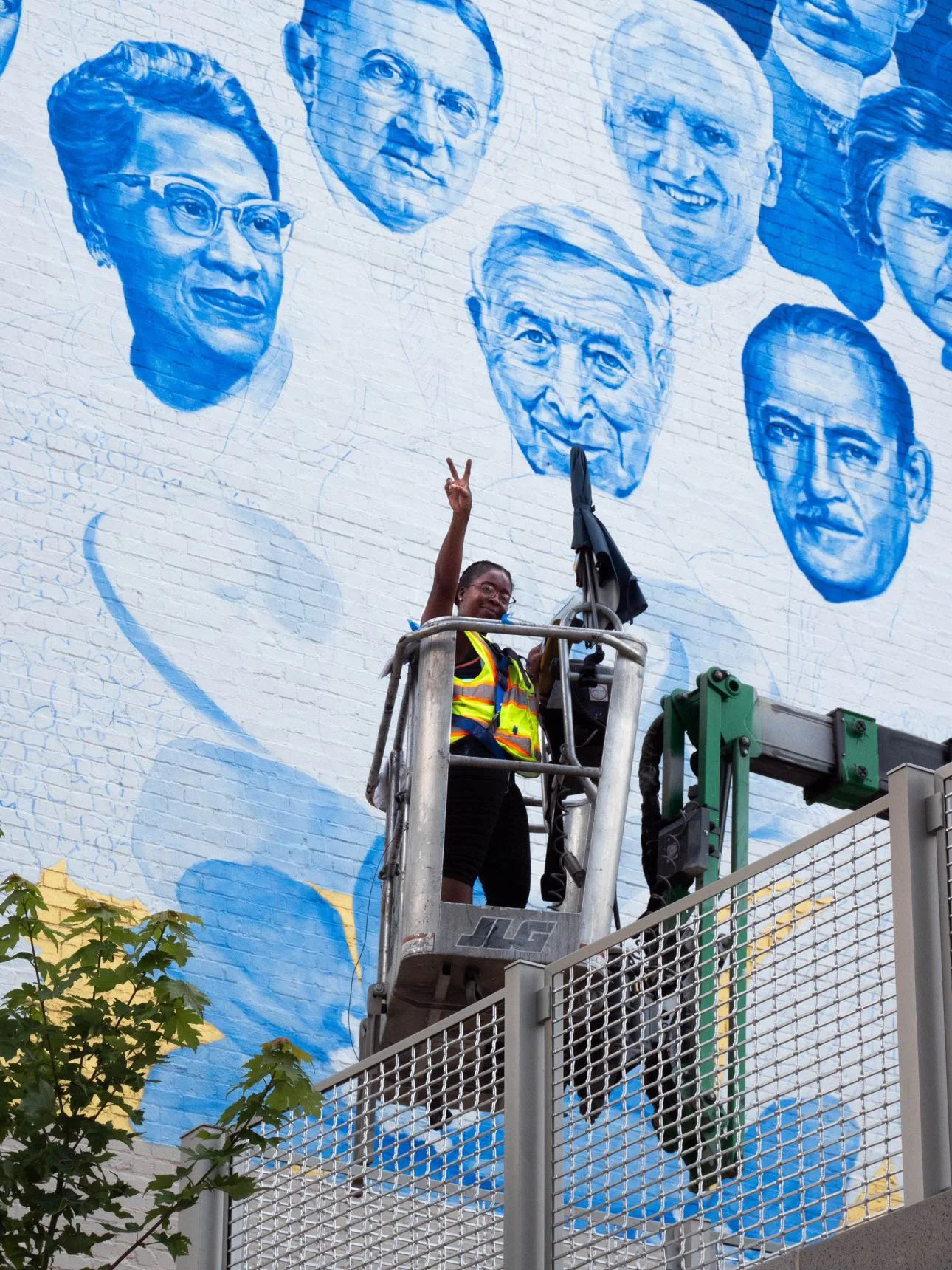 In 2023, I assisted Chicago based artist and muralist, Anna Murphy, on a large scale mural located downtown Indianapolis on the Steak N Shake Headquarters at Morris Bicentennial Plaza. The mural was the final installation for the Bicentennial Legends mural project. This particular mural features 44 Hoosiers who made a significant impact within the state of Indiana. The design included portraits as well as birds and flowers that paid homage to the roots of the legends’ hometown.