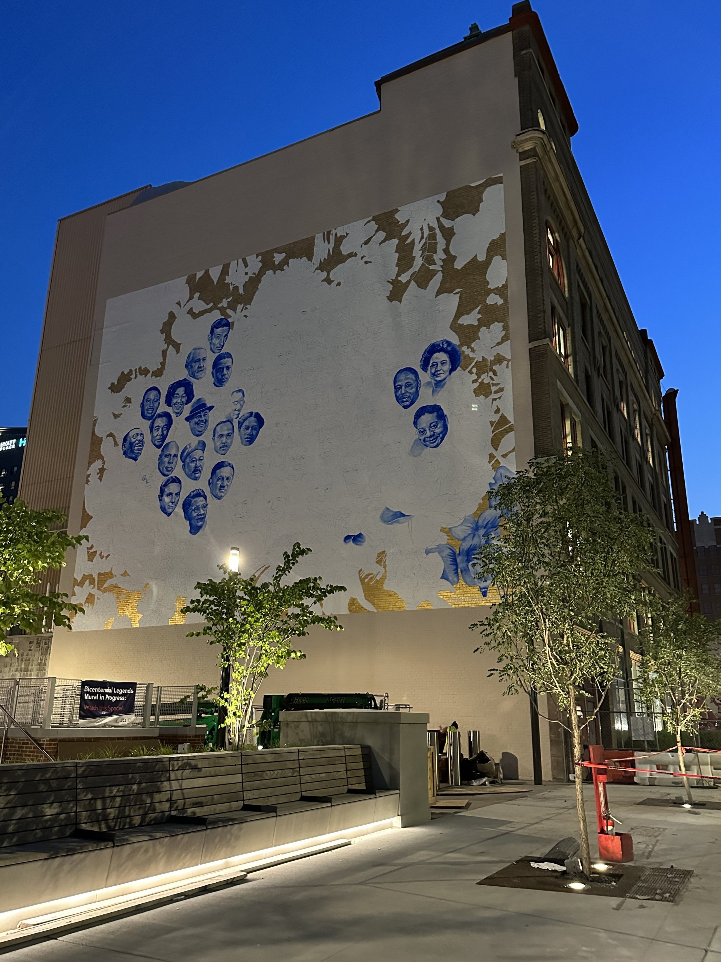 This installation of this mural started in July 2023 and concluded September 2023. The Legendary mural was made possible by The City of Indianapolis Bicentennial Commission, The Capital Improvement Board of Managers of Marion County, Pacers Sports & Entertainment, Indiana Humanities, Indy Arts Council, and a committee of over 40 Indianapolis community leaders.