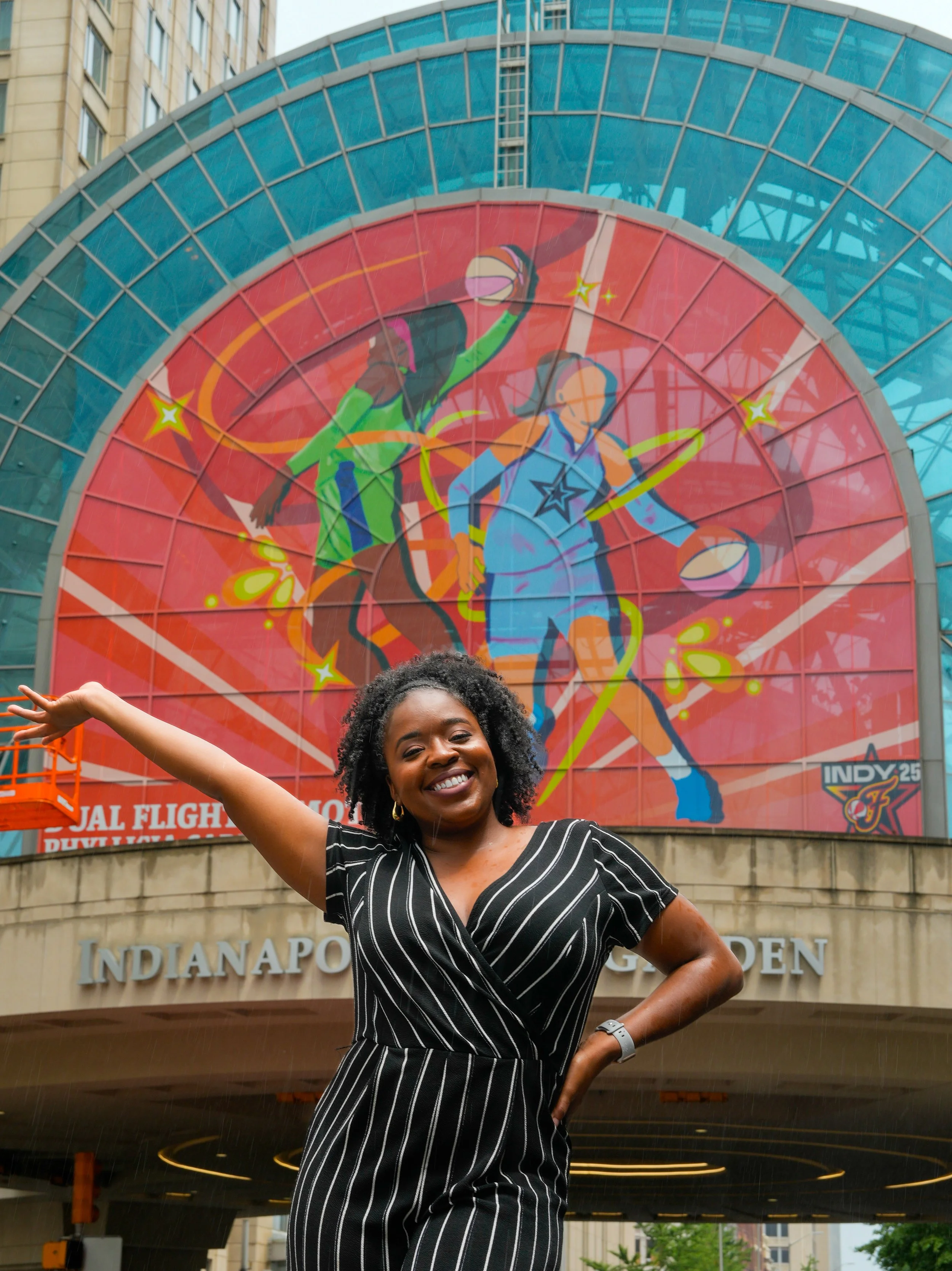 In 2023, I assisted Chicago based artist and muralist, Anna Murphy, on this large scale mural on the Steak N Shake Headquarters. The mural was the final installation for the Bicentennial Legends mural project. This particular mural now features 44 Hoosier legends who made a significant impact within the state of Indiana. The design not included portraits, but birds and flowers that paid homage to the roots of their hometown.