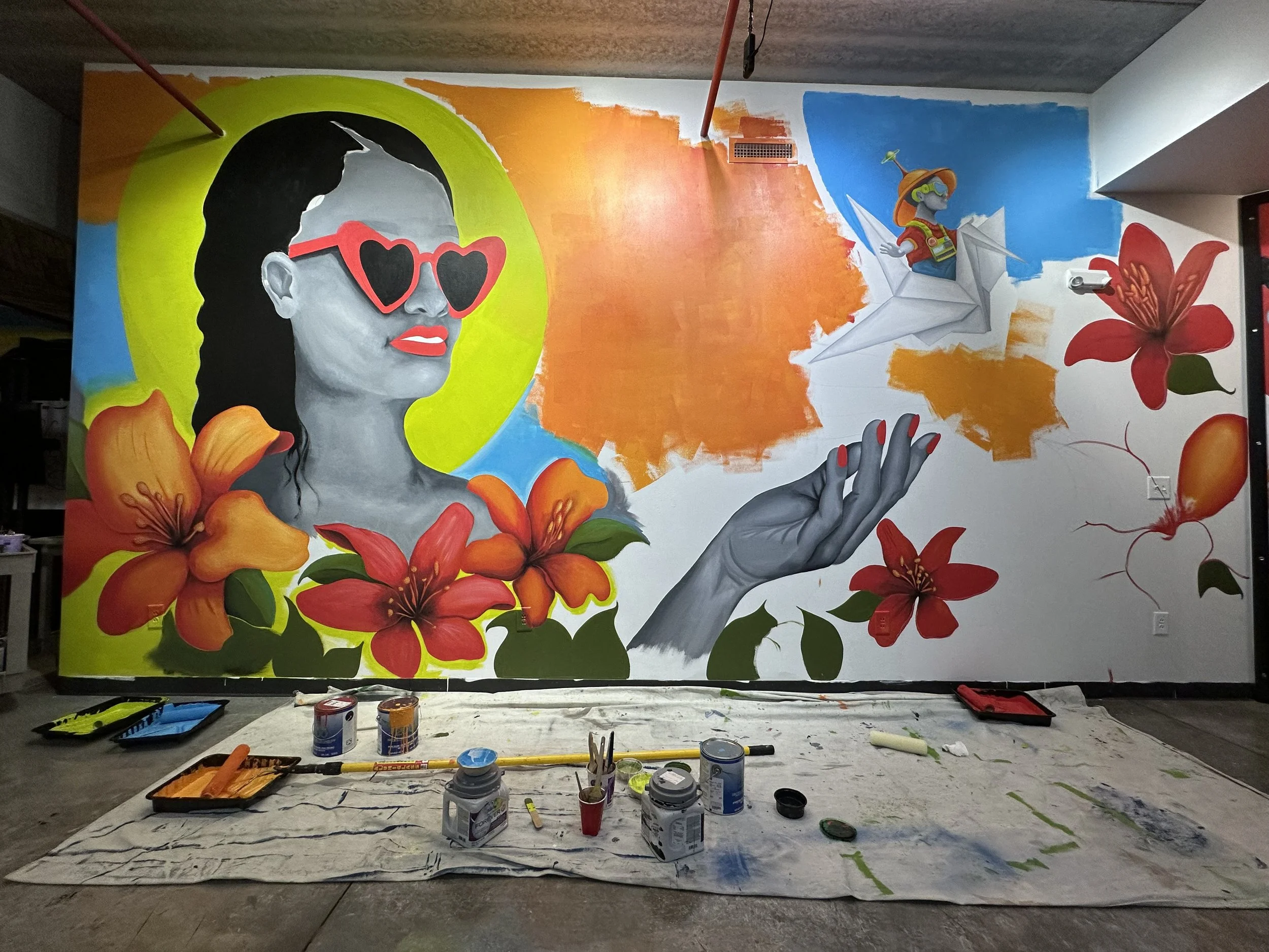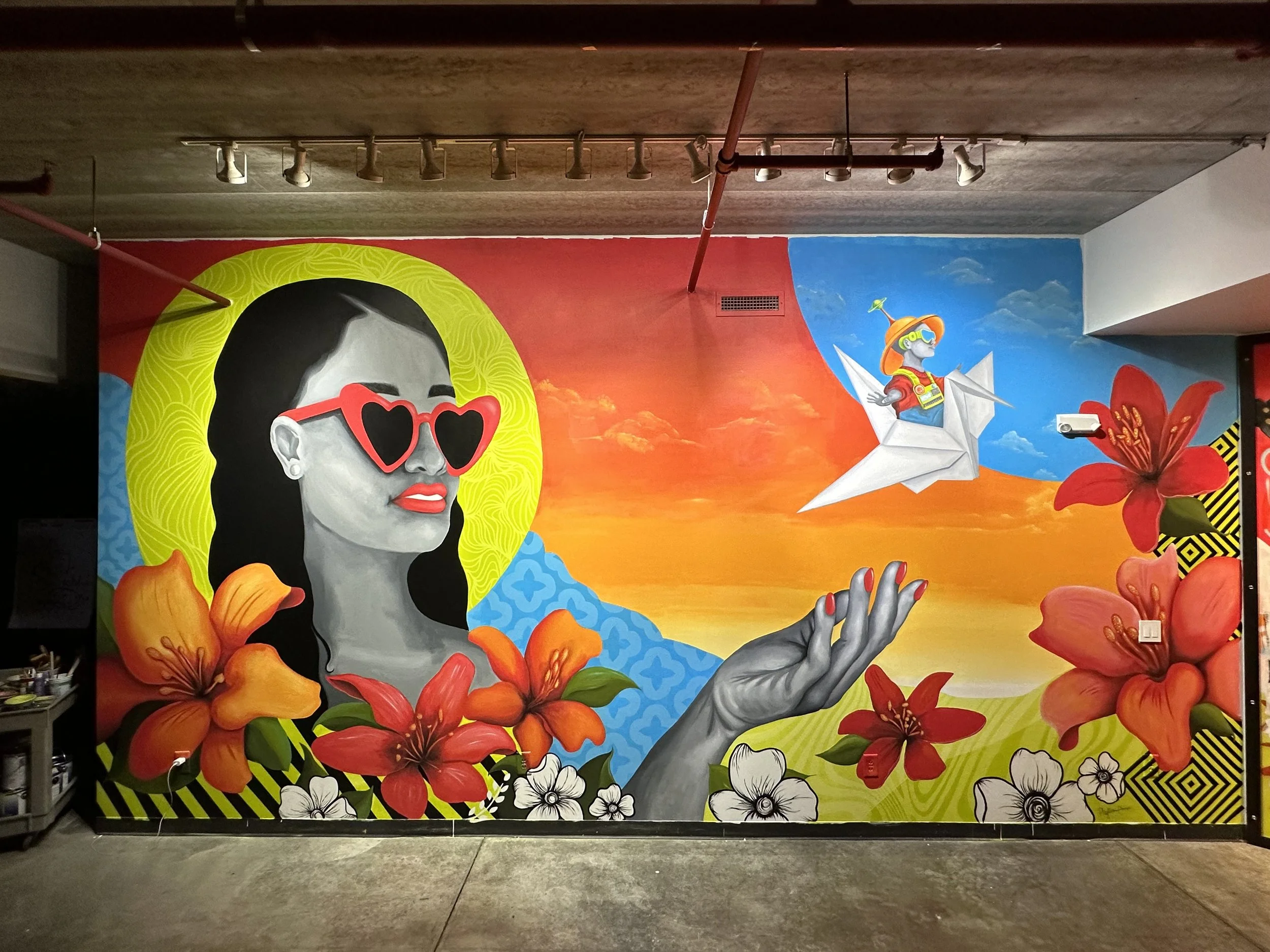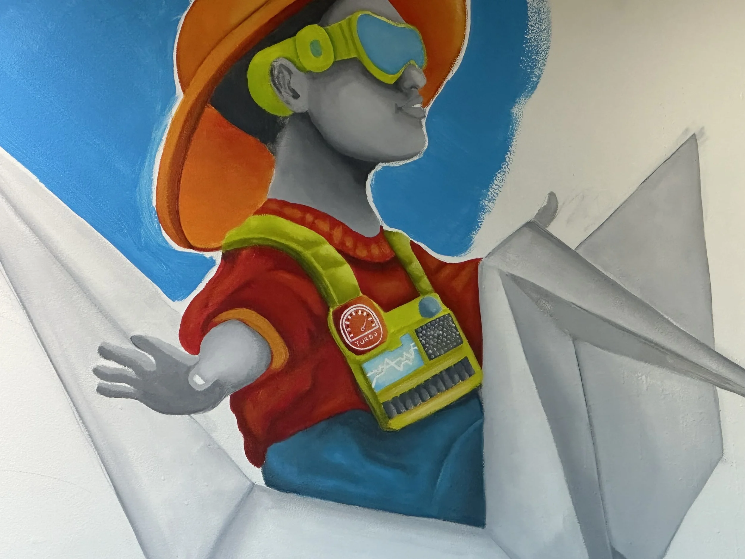 This mural captures the powerful moment of self-reflection and the release of childhood dreams into the world. The figure of the child symbolizes the imagination and wonder of youth, urging adults to reconnect with their own sense of possibility and bravery. It’s an invitation to dream boldly once again, to embrace the limitless potential within us all.